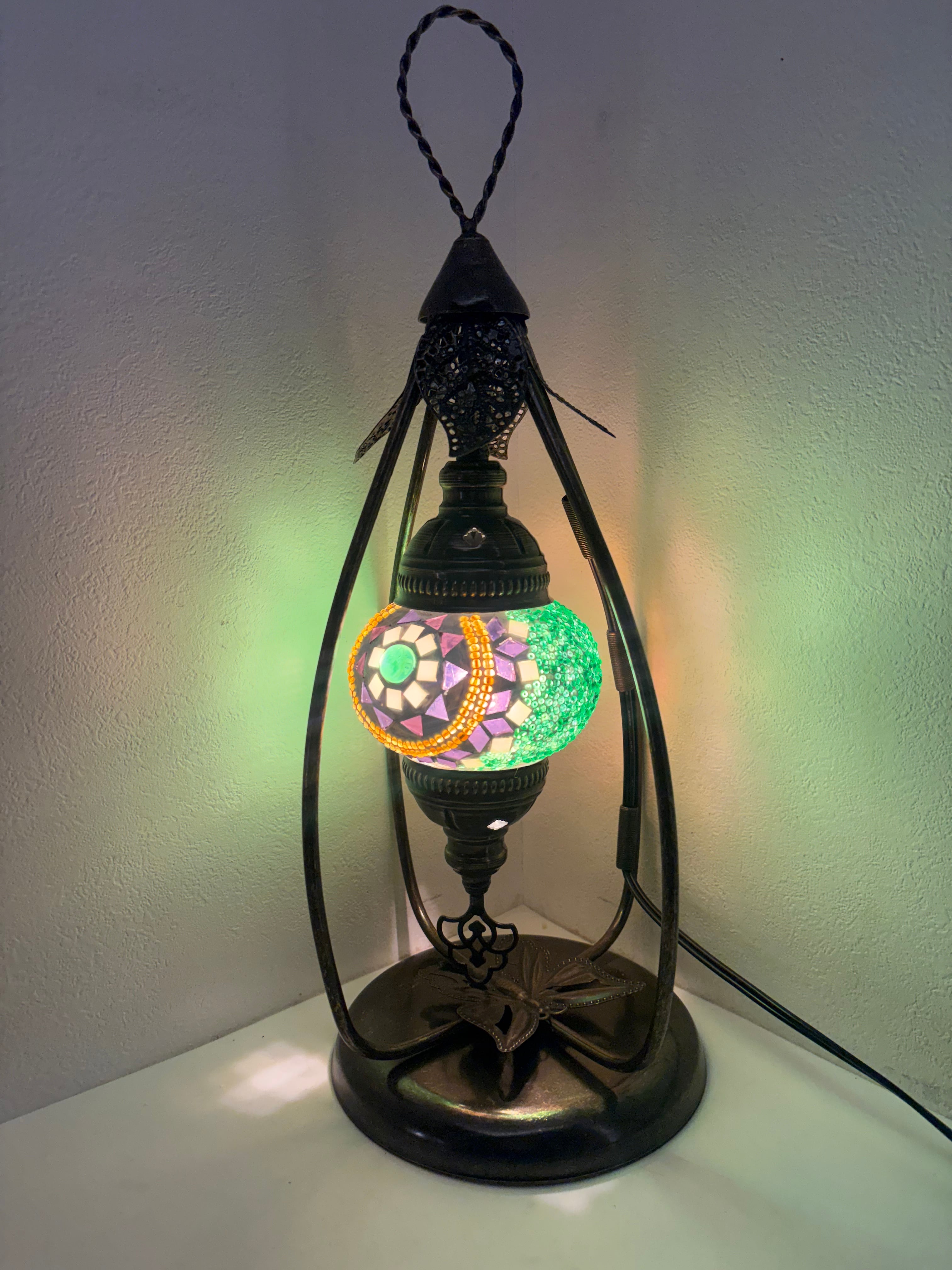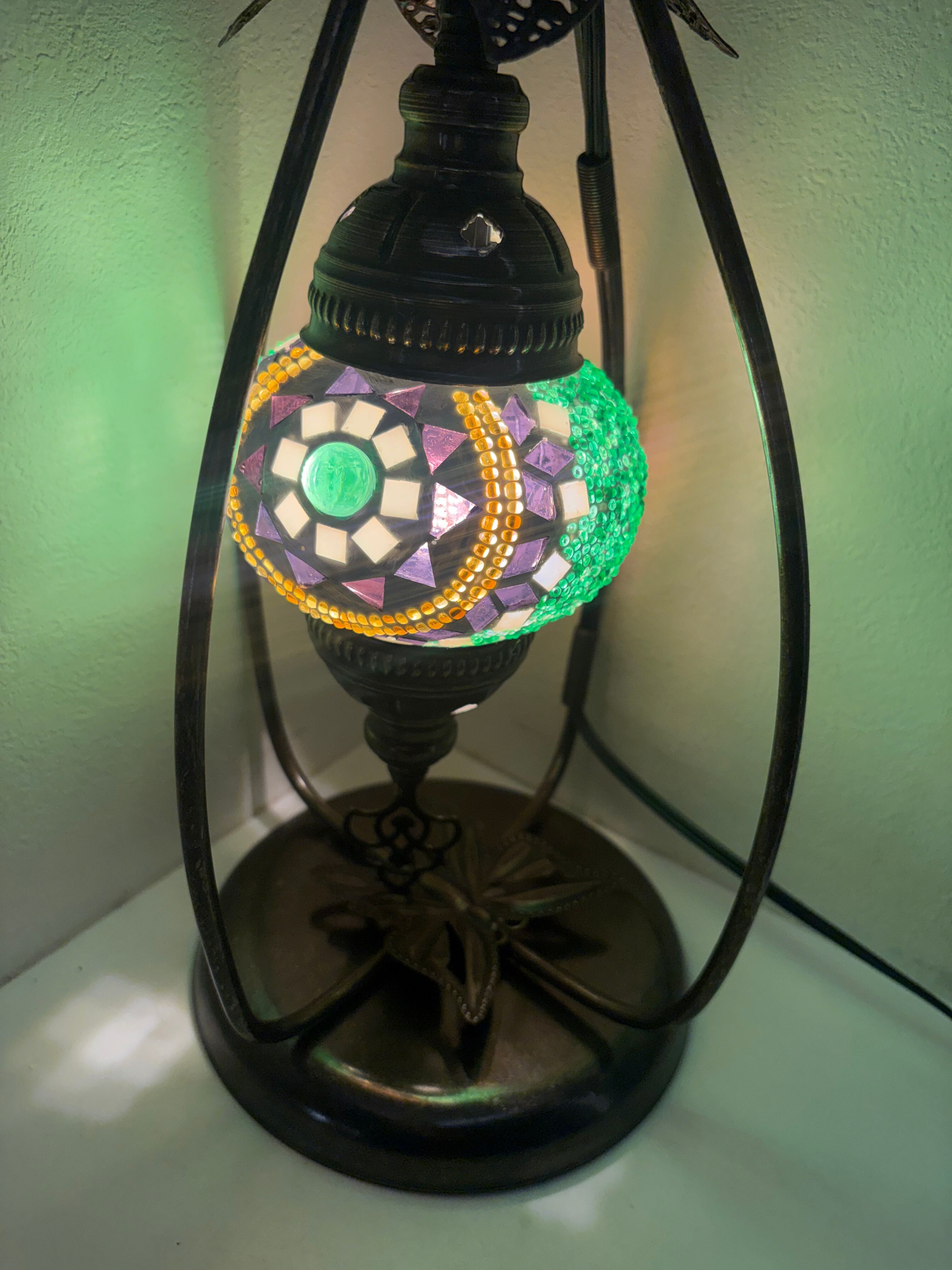 緑と紫色の大人な雰囲気のランプです。