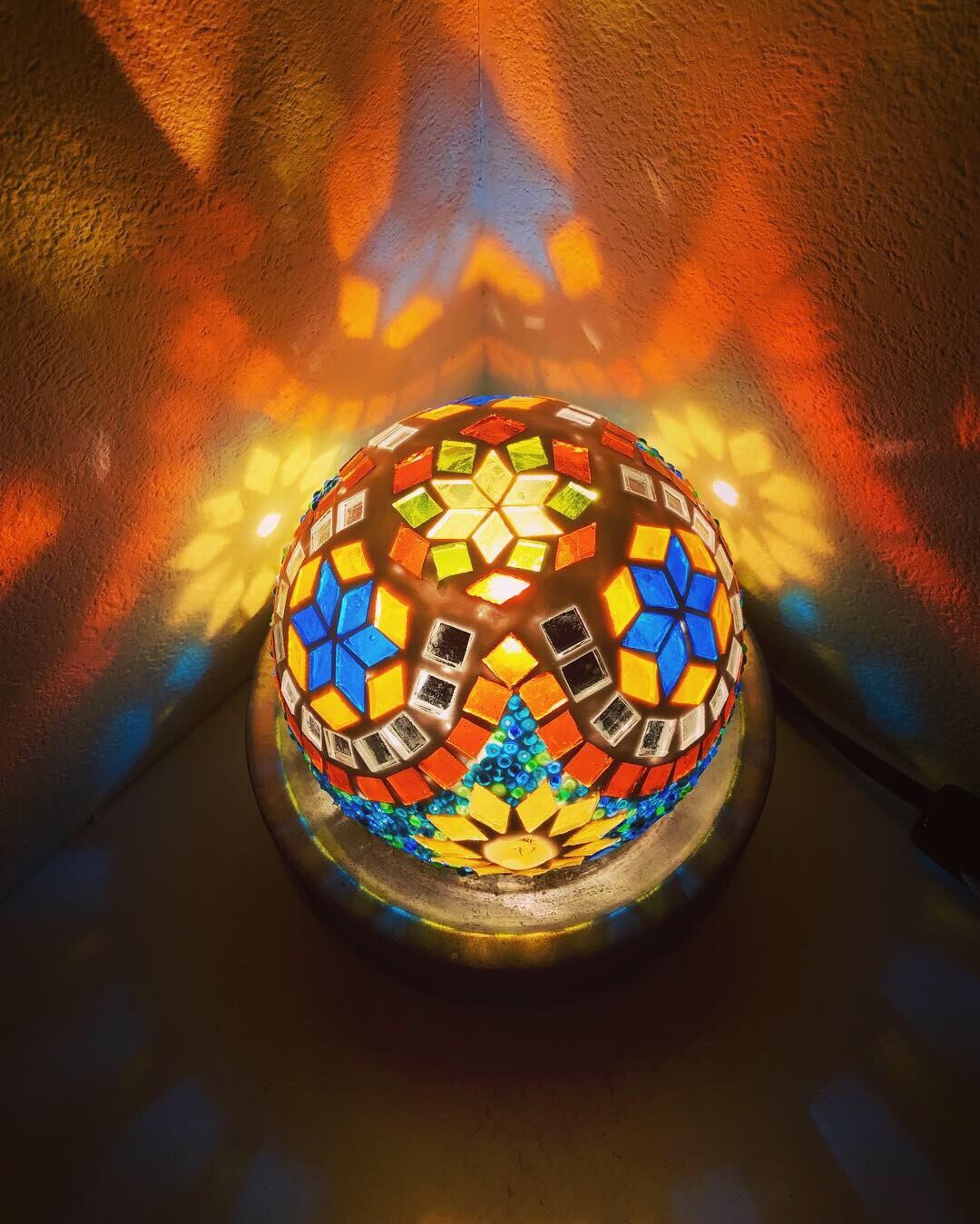 アンティークっぽい色づかいでオリエンタルな雰囲気をお楽しみ頂けます。点灯していなくても可愛らしくインテリアとしてもオシャレです。点灯すると幻想的な灯りが落ち着いた優しい空間を作り出します。画像1、2、3枚目は電球スタンド使用。4、5枚目はロウソク使用。是非トルコランプの世界観をお楽しみください♡