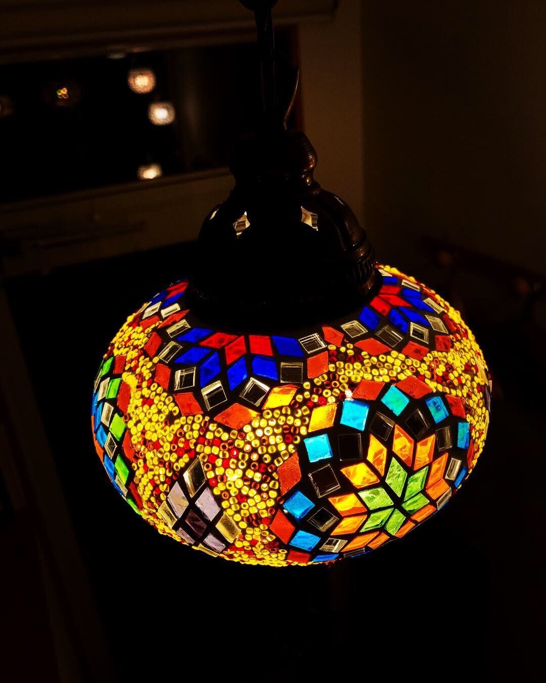 1本のチェーンで吊り下げられるスッキリしたランプ。大きめのランプシェード(Lサイズ幅約19cm)がゴージャス。イエローの粒ビーズを施し、アジアンっぽく仕上げました。温かみのある色合いでとても美しいランプです...幻想的な灯火がお部屋をオリエンタルな雰囲気を演出してくれます♡