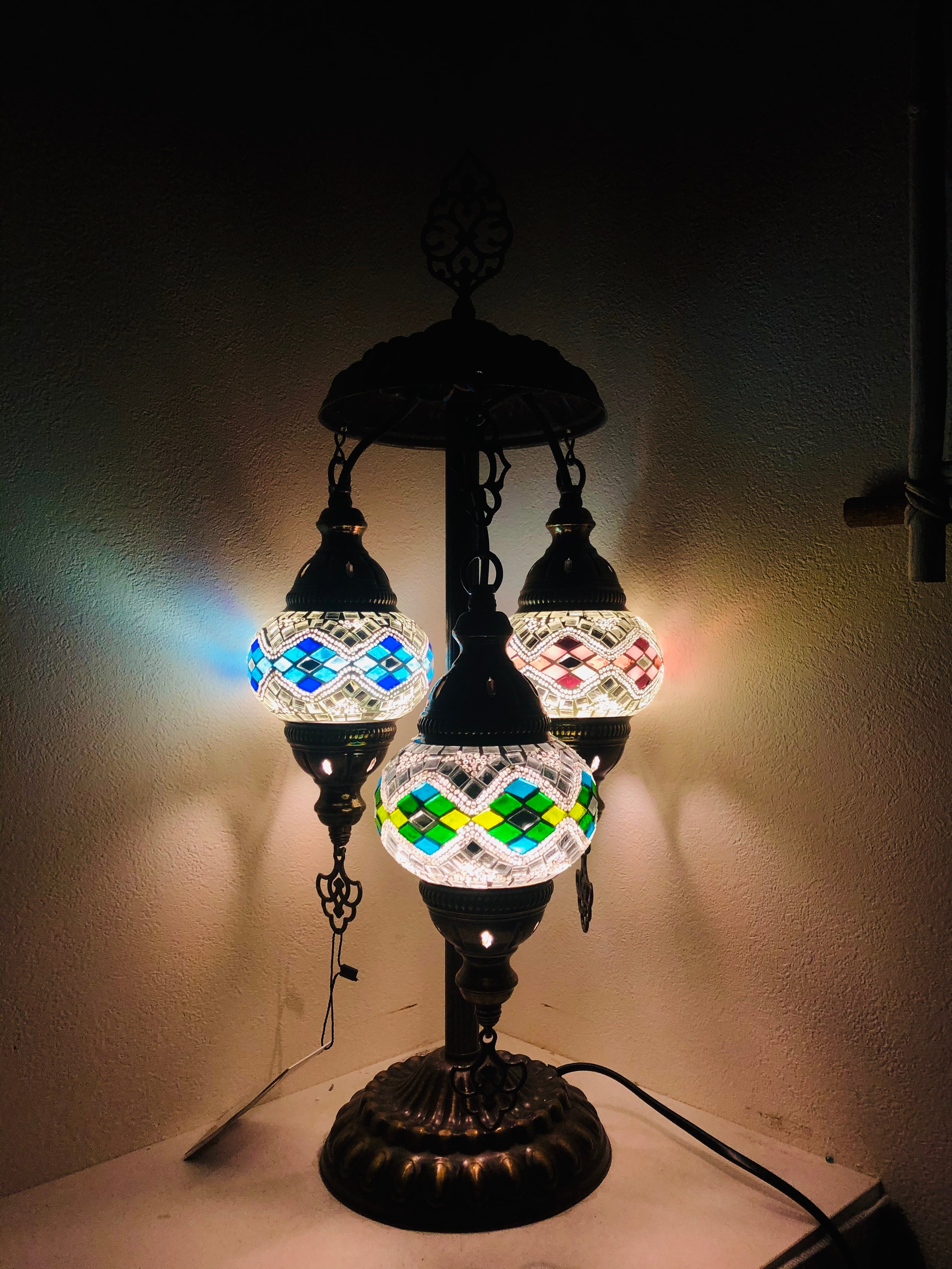 トルコモザイクランプ3灯シャンデリアスタンドタイプ