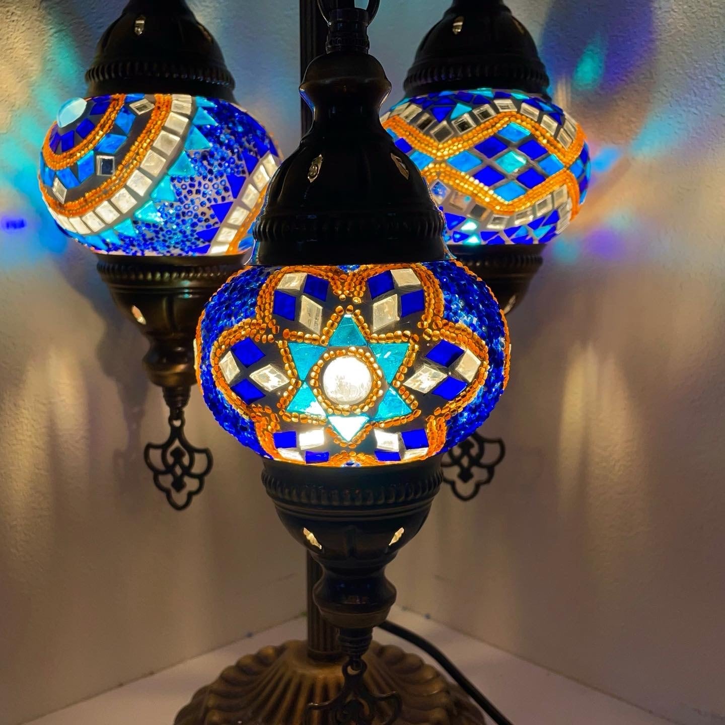 トルコモザイクランプ3灯スタンドランプ(LED電球付)
