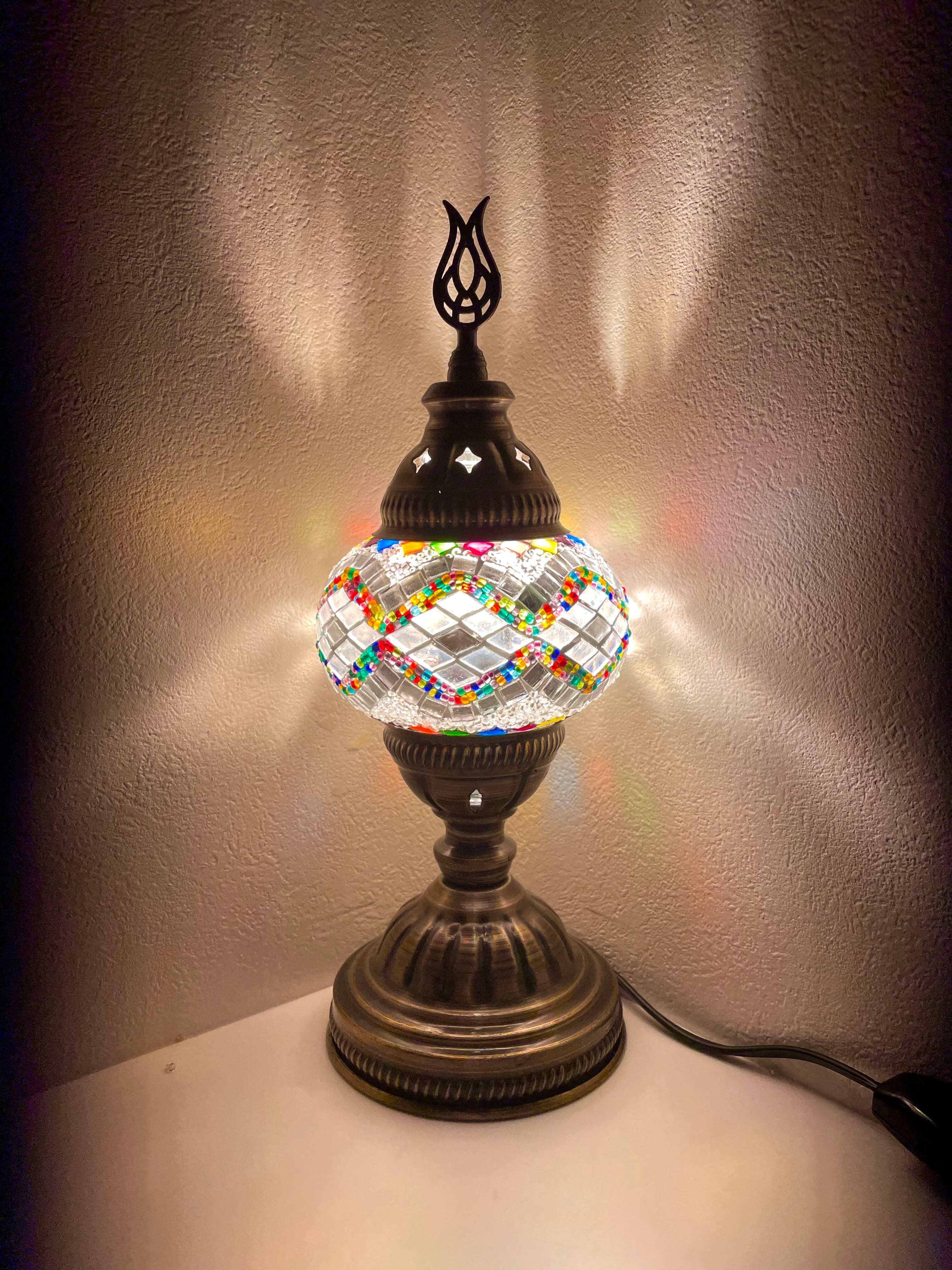 母の日のプレゼントにいかがですか?伝統的なデザインで制作してみました。モザイク感たっぷりの可愛らしいランプです。クリアメインのランプは場所を選ばず、和にも洋にもマッチします。幻想的な灯火をお楽しみください。