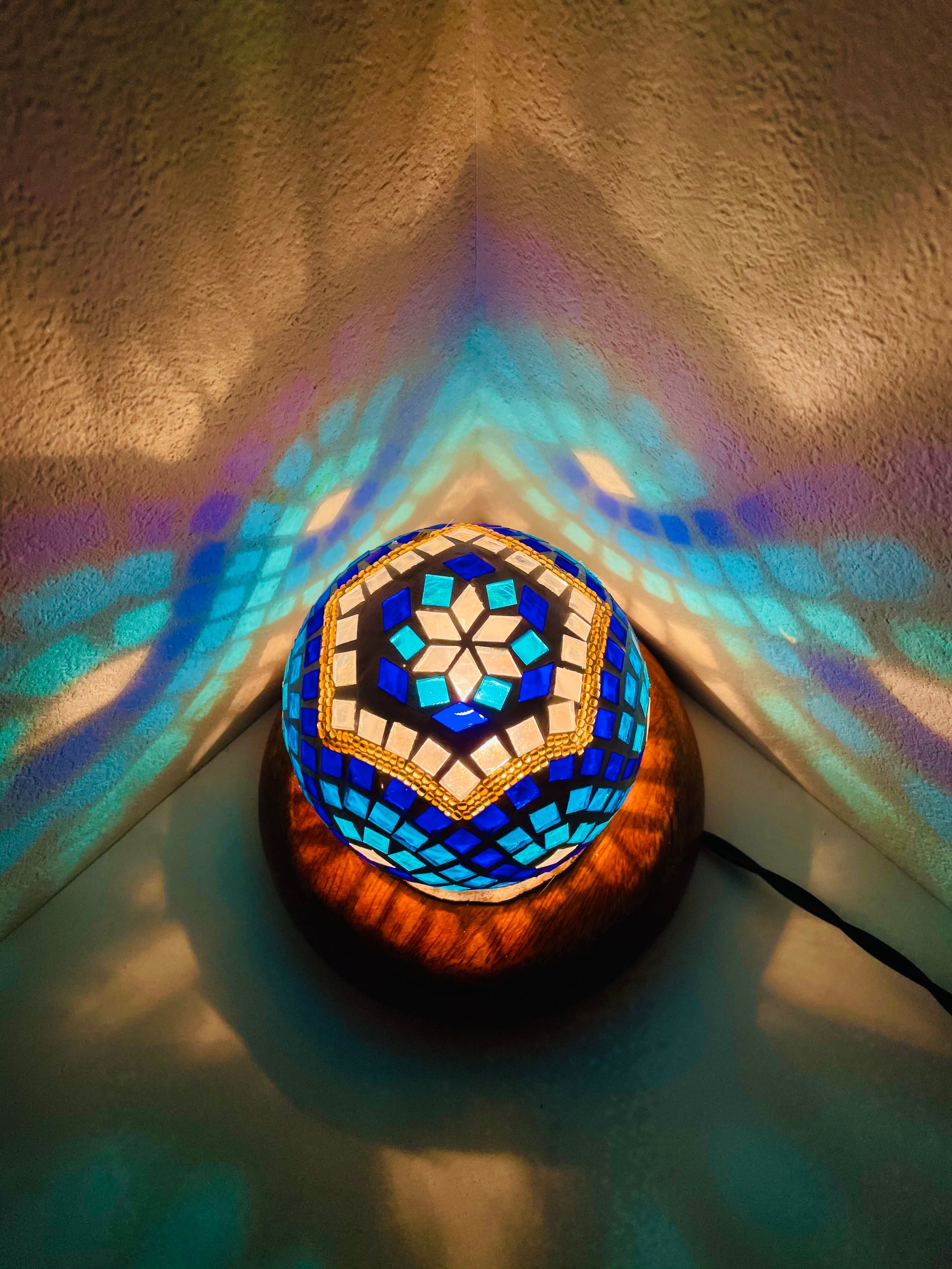 Summer☆海のような...波のような...涼しげなキャンドルホルダーを制作してみました♡電池式LEDティーライトやロウソクの灯火も幻想的でお洒落な雰囲気で楽しめますよ。おうち時間をちょっとだけお洒落に過ごしてみませんか?画像1、2、3枚目は電球スタンドを使用し、画像4枚目は電池式LEDティーライト使用。